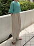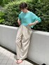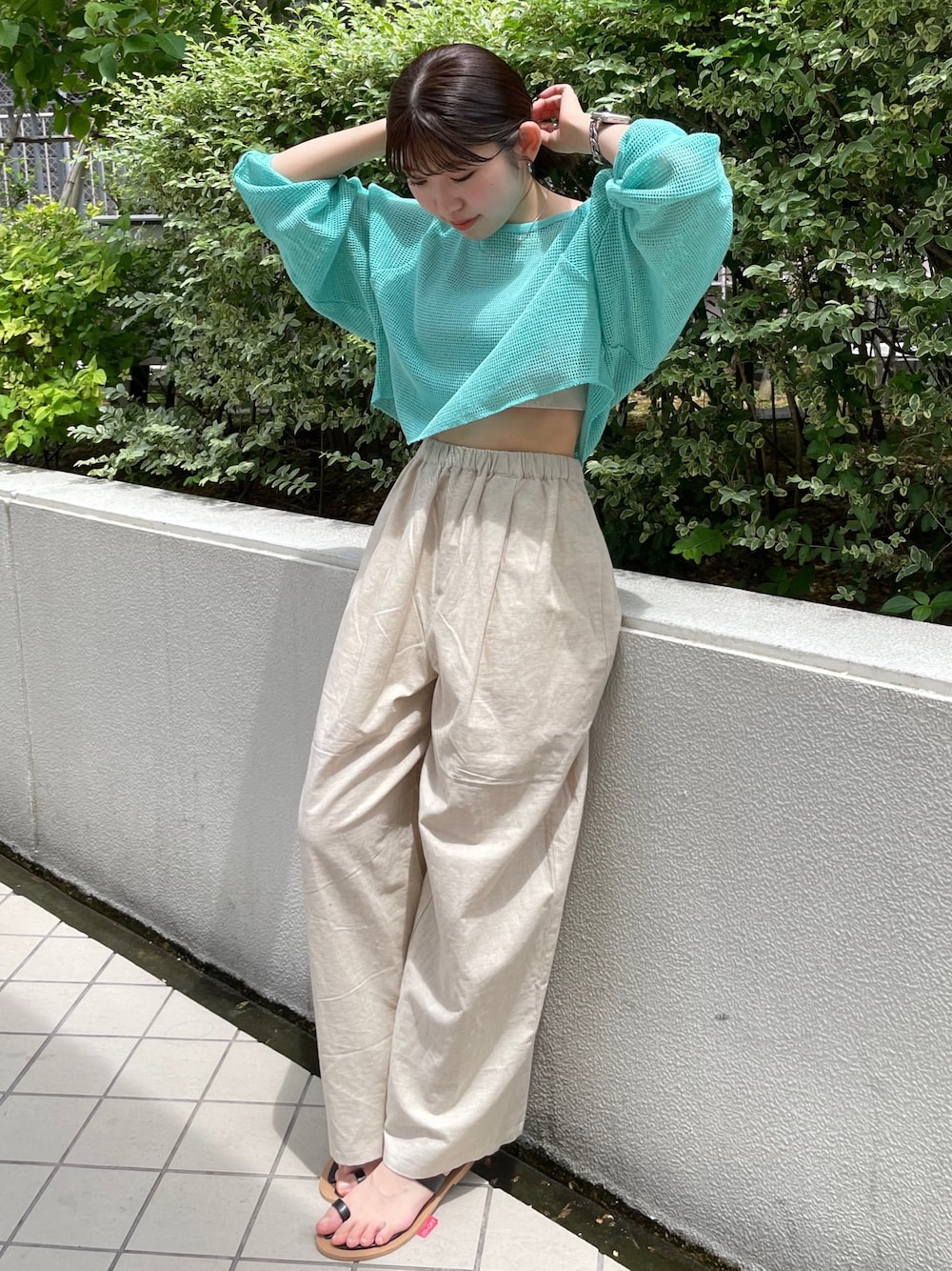 夏のターコイズブルーコーデ🫐 《IG: @shion_tada_の投稿詳細》 【パンツ】 ラフに履けるパンツ。フリーサイズですが、152センチでフラットサンダル合わせだとピッタリ地面につくくらいでした! 小柄さんは厚底スニーカーや厚底サンダル合わせでも⭕️ 【メッシュトップス】 冷房や日焼け対策にもバッチリなトップスです✨ 袖部分もたぽっとしてるシルエットが可愛いですよね🤎 二の腕もカバーしてくれます! 透け感も絶妙で、152センチで丈感はおへそくらいでした! 【サンダル】 Mサイズ着用してます! 足幅広めの私でも履き心地抜群でした! 足も疲れにくかったです! 【インナー】 二色買いしました!華奢な紐のキャミ🪢 下着のラインが見えてしまうお洋服でも、これを着れば大丈夫◎✨ もってて損なしなパット付きキャミ!