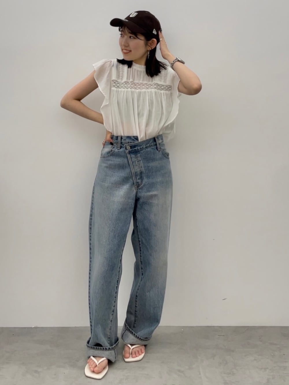 低身長コーデリール🧵 Instagram【@shion_tada_】リール詳細♡ 【インナー】 二色買いしました!華奢な紐のキャミ🪢 下着のラインが見えてしまうお洋服でも、これを着れば大丈夫◎✨ もってて損なしなパット付きキャミ! 【ブラウス】 生地感柔らかく着心地抜群!肩の部分のフリルは肩に馴染んでくれるので甘くなく着れちゃいます! 【デニム】 大人気のリメイクデニム🖤 152センチ24インチ着用。 丈感長めですが、ソールのあるスニーカーと合わせたら大丈夫でした! なんと言っても可愛いデザイン😍 リメイクデニムなので、普通のデニムとは違ったおしゃれさが出せます! ウエスト周りはゆったりめのおつくりなので、インもできちゃいました◎ 【サンダル】 足幅広めの私でも大丈夫でした! 履き心地抜群❤️ 紐部分華奢なので、系統選ばずに使えます! 【キャップ】 ニューエラコラボのキャップ🧢✨今期の色味も可愛い!!