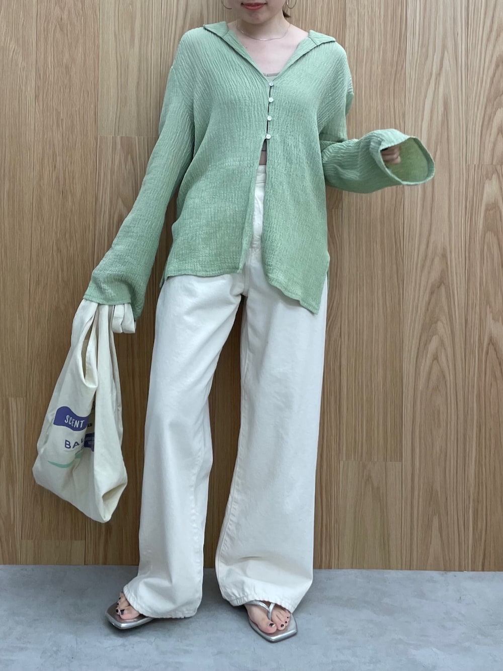シャツのヘルシーコーデ♡ 《IG: @shion_tada_の投稿詳細》 【シャツ】 開襟なのにカチッとしすぎてなく、デイリー使いしやすいシャツ! 袖部分のデザインも可愛い♡ しわもつきにくく持ち運びも便利です! 【デニム】 柔らかい生地感で履き心地抜群です! 152センチ24インチ着用ですが、小柄さんら丈感はフラットのスニーカーだと引きずってしまうので、ロールアップするかサンダル、厚底スニーカー合わせがおすすめです! 【サンダル】 足幅広めの私でも大丈夫でした! 履き心地抜群❤️ 紐部分華奢なので、系統選ばずに使えます! 【バック】 配色が可愛いトートバック!コーデのアクセントに🩵 【インナー】 二色買いしました!華奢な紐のキャミ🪢 下着のラインが見えてしまうお洋服でも、これを着れば大丈夫◎✨ もってて損なしなパット付きキャミ!