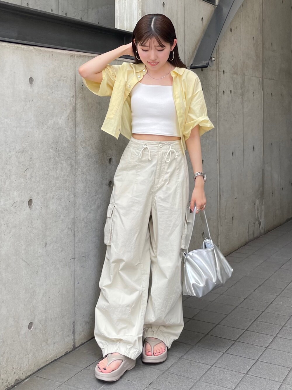 多田詩音(Ungrid)のカーゴパンツ「ジップデザインミリタリーパンツ」を使ったコーディネート