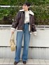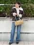 《IG: @shion_tada_の投稿詳細》 【デニム】 Lee別注デニム! 履き心地は柔らかく楽ちんでした✨ 152センチ24inch着用でスニーカーでも丈感地面にぎりぎりつかないくらいでした! 【ブルゾン】 152センチSサイズです! 質感もリアルレザーのような感じなので、高見えします! ボア部分も粒大きめなのでより温かいですよ☀️ 丈感はお尻隠れる程度です! 小柄さんは大きすぎるかな?と心配になってしまうかもしれませんが、程よいゆったり感で着て頂けるので、あえてこのトレンド感のある大きさが可愛いですよー♡ 【ニット】 大人気モヘアニット! 腕周りゆったり感あるので、中にTシャツ着ても窮屈感全くありません! 152センチで丈はお尻隠れる丈感です✨ 室内で着ていると、暑いくらいなので、 真冬でも安心です🫶🏻 【バック】 トレンドな横長の形✨ コーデのアクセントに♡物も沢山入ります! 【アクセ】 チェーンは華奢なので、どんなコーデにも合わせやすいネックレスです! 【ブーツ】 足幅広い私でも窮屈感なく履けました✨ 普段23.5cm着用でMサイズが丁度でした。