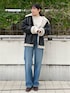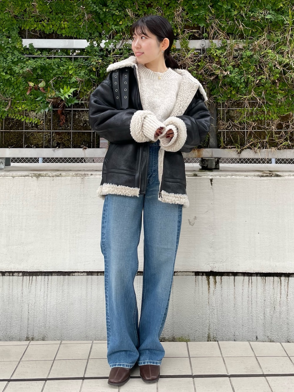 《IG: @shion_tada_の投稿詳細》 【デニム】 Lee別注デニム! 履き心地は柔らかく楽ちんでした✨ 152センチ24inch着用でスニーカーでも丈感地面にぎりぎりつかないくらいでした! 【ブルゾン】152センチMサイズです! 質感もリアルレザーのような感じなので、高見えします! ボア部分も粒大きめなのでより温かいですよ☀️ 丈感はお尻すっぽり隠れる程度です! 小柄さんは大きすぎるかな?と心配になってしまうかもしれませんが、程よいゆったり感で着て頂けるので、あえてこのトレンド感のある大きさが可愛いですよー♡ 【ニット】 大人気モヘアニット! 腕周りゆったり感あるので、中にTシャツ着ても窮屈感全くありません! 152センチで丈はお尻隠れる丈感です✨ 室内で着ていると、暑いくらいなので、 真冬でも安心です🫶🏻 【アクセ】 チェーンは華奢なので、どんなコーデにも合わせやすいネックレスです! 【ブーツ】 足幅広い私でも窮屈感なく履けました✨ 普段23.5cm着用でMサイズが丁度でした。