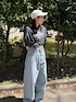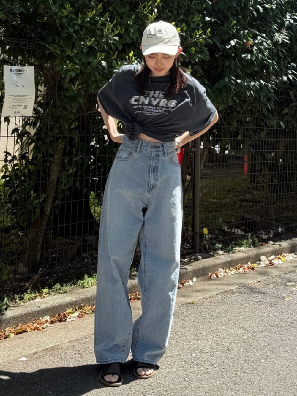 多田詩音(Ungrid)のデニムパンツ「ルーズフィットテーパードデニム」を使ったコーディネート
