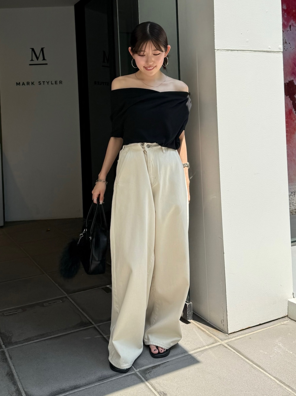 多田詩音(Ungrid)のTシャツ/カットソー「タックデザインオフショルTee」を使ったコーディネート