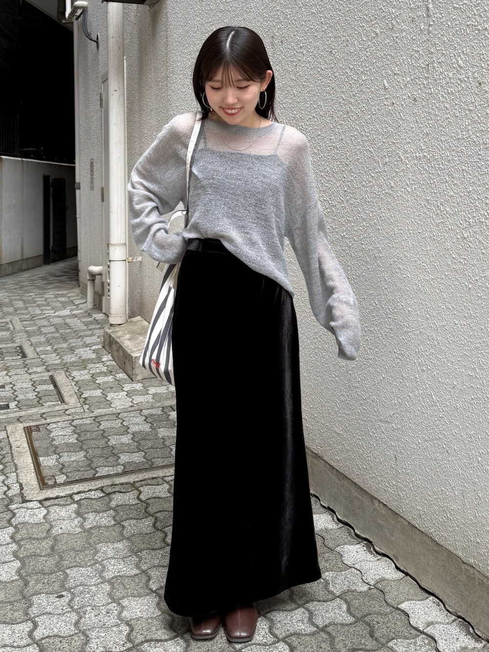 《IG: @shion_tada_の投稿詳細》 【ニット】 程よいゆるっと感が可愛いニット!152センチでおへそ隠れる丈感でした! 【スカート】 ベロアスカートですが、静電気も気にならなく、履き心地抜群でした! 丈は、小柄さんだとフラットスニーカーでギリギリの丈感なので、152センチの私はSサイズで 厚底スニーカーで合わせてみました❤ あえてマキシ丈で履くのもおすすめです✨ 【ブーツ】 足幅広い私でも窮屈感なく履けました✨ 普段23.5cm着用でMサイズが丁度でした。 【バック】 ショルダー部分の調節もできます! 沢山入りますよー✨
