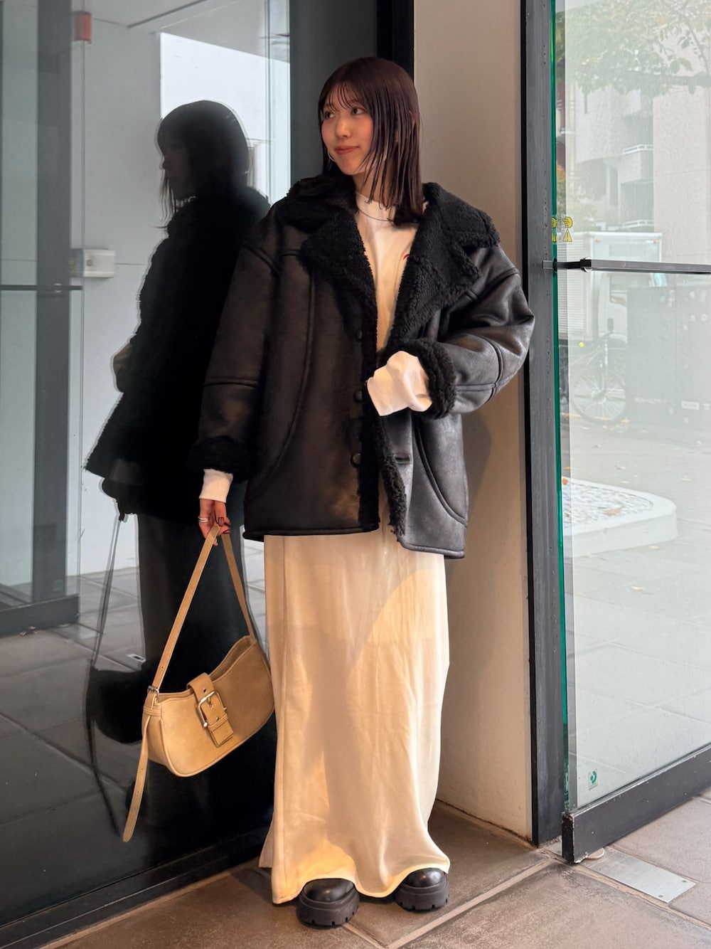 多田詩音(Ungrid)のブルゾン「フェイクムートンルーズブルゾン」を使ったコーディネート