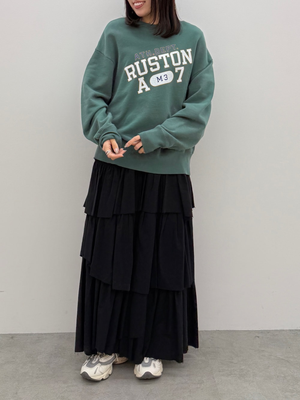 《IG: @shion_tada_の投稿詳細》 【スウェット】 柔らかくて着心地抜群スウェット! 152センチでお尻隠れる丈感です! 【スカート】 152センチスニーカー合わせでも地面につかない丈感でした!