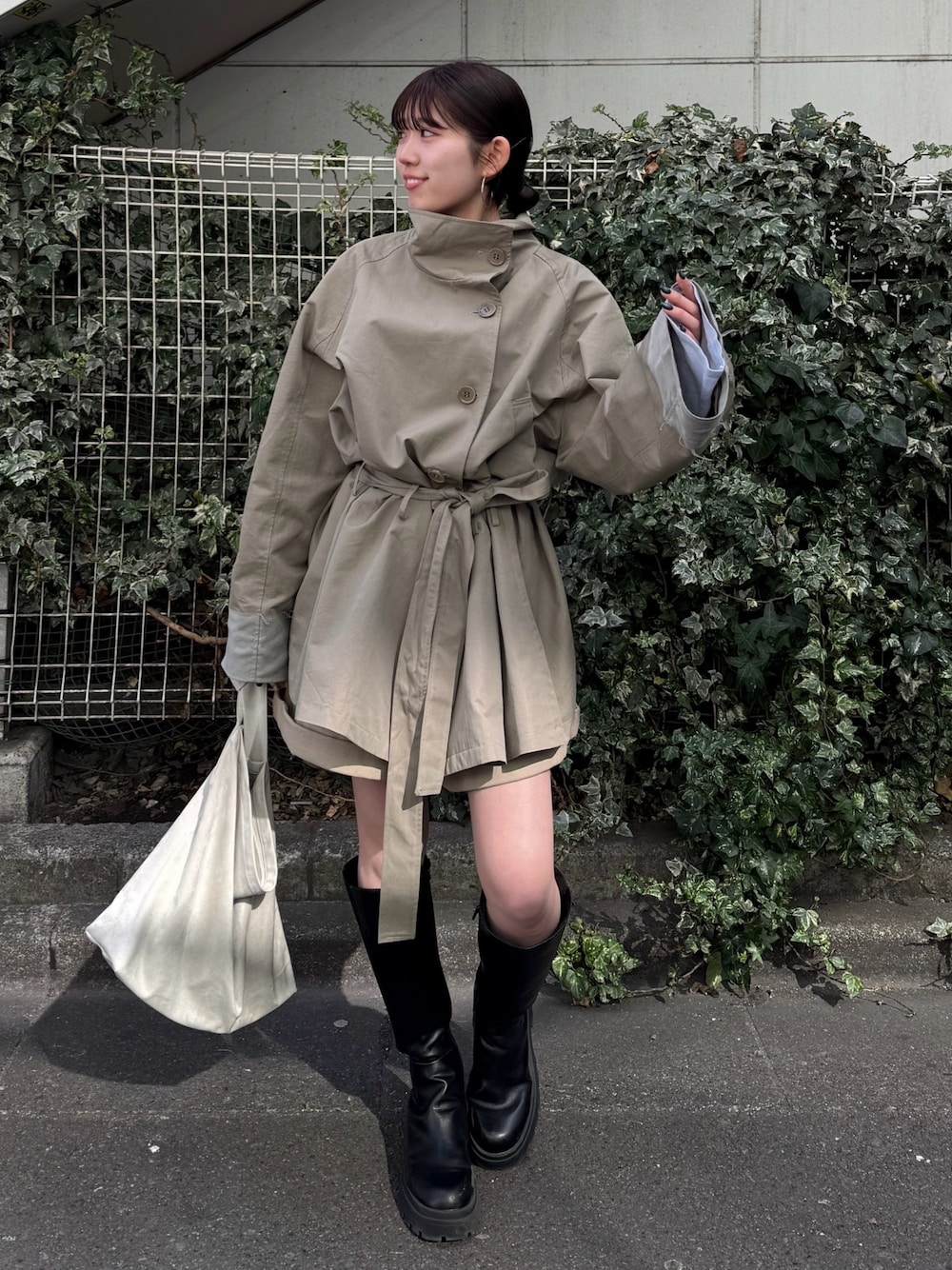 多田詩音(Ungrid)のトレンチコート「スタンドカラーミドル丈トレンチコート」を使ったコーディネート