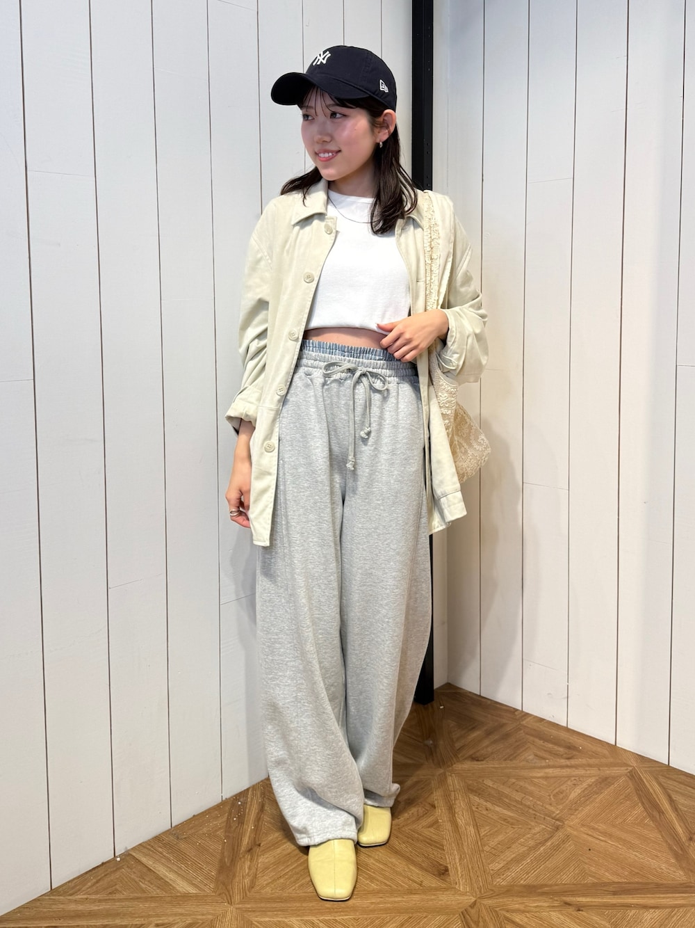 多田詩音(Ungrid)のスウェットパンツ「レイヤードデザインスウェットルーズパンツ」を使ったコーディネート