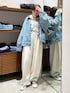 多田詩音(Ungrid)のスウェットパンツ「レイヤードデザインスウェットルーズパンツ」を使ったコーディネート