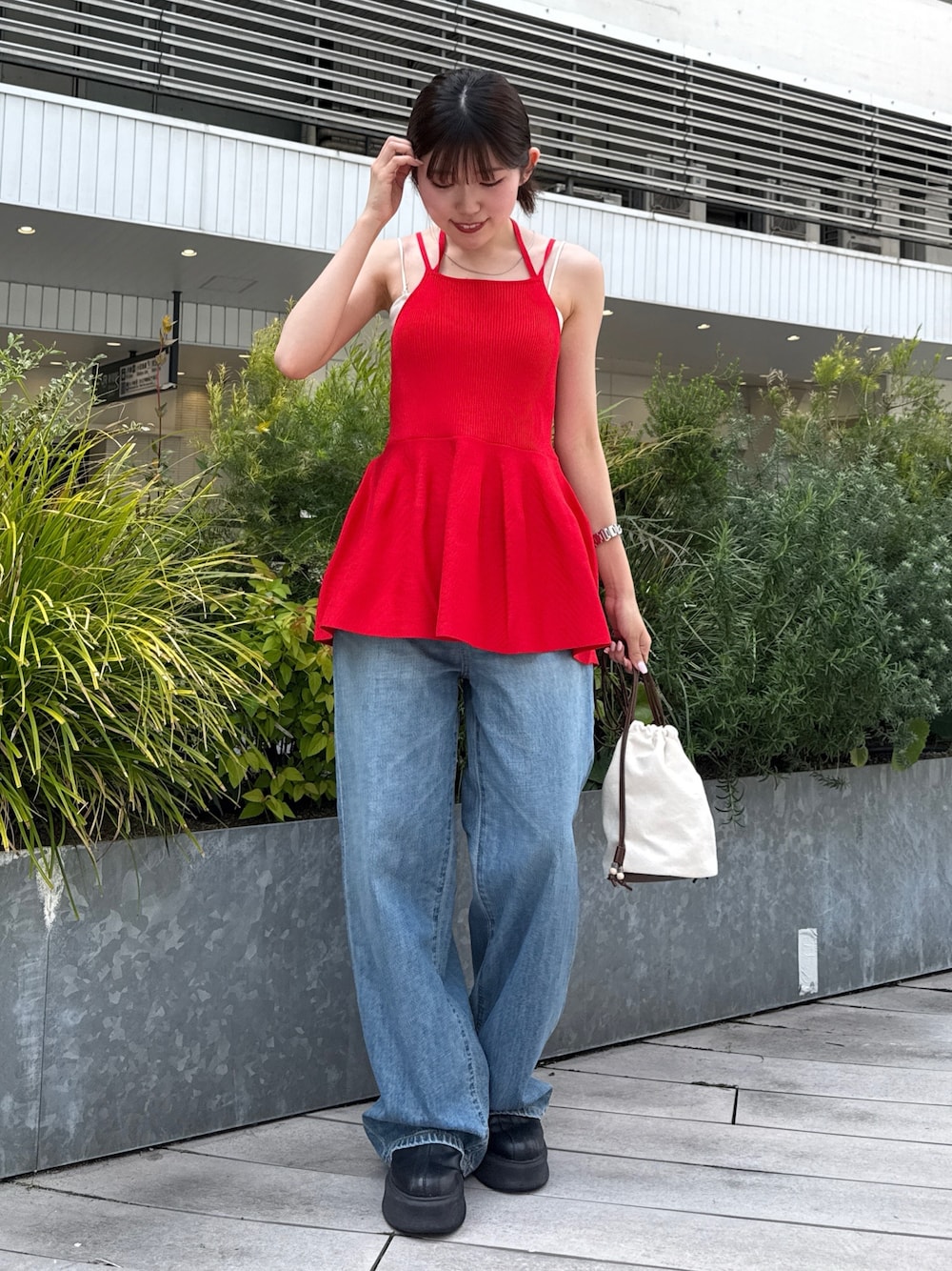 多田詩音(Ungrid)のキャミソール「ペプラムデザインニットキャミ」を使ったコーディネート