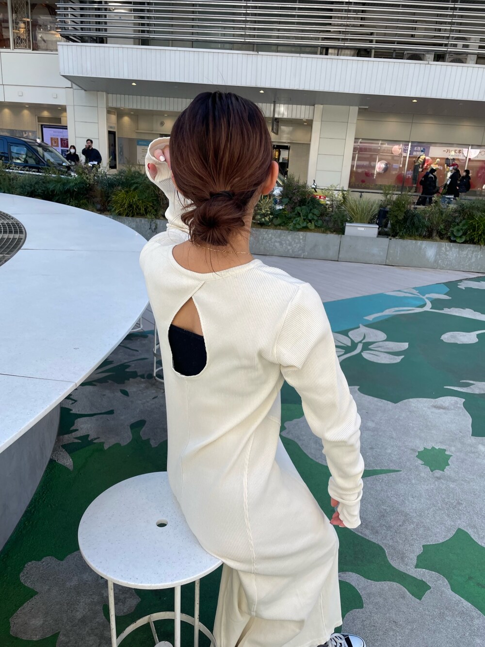 藤原麻帆(Ungrid)のワンピース「バックオープンフィットカットワンピース」を使ったコーディネート