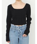 藤原麻帆(Ungrid)のTシャツ/カットソー「スクエアネックショートロングスリーブTee」を使ったコーディネート