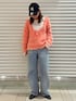 藤原麻帆(Ungrid)のニット/セーター「Vネック起毛ルーズニット」を使ったコーディネート