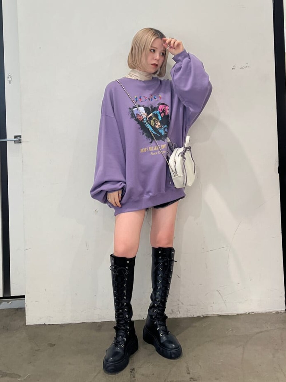 MOMOKA(jouetie)のブーツ「レースアップスニーカーソールロングブーツ」を使ったコーディネート