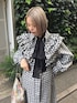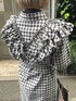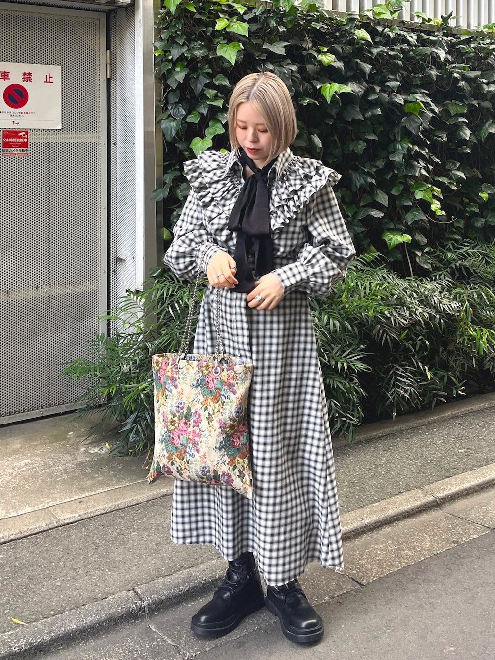 大人ガーリーコーデ🖤🤍 【ワンピース】肩周りのフリルがヴィンテージ&ガーリー見えするワンピース👗 私は、リボンブラウスをレイヤードして甘めに着てみました❤︎✨ ボリューム感あるスリーブなので、中にレイヤードしても着膨れしません!153cmの私でも裾を擦らずに安心して着れました❤︎ 足元はハードめにブラックのブーツでまとめてみました🦋💜