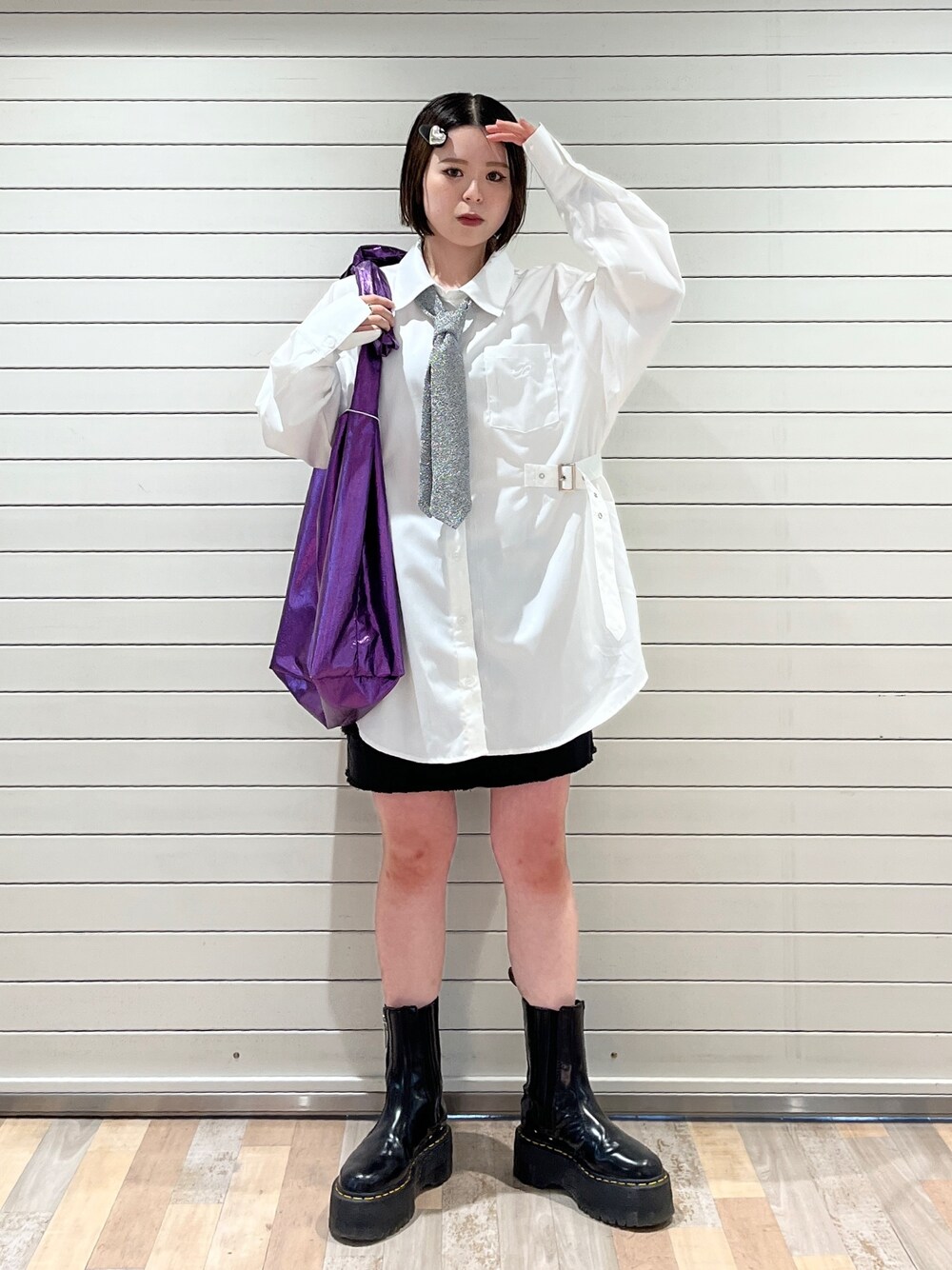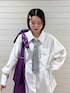 【シャツ】両サイドにウエストベルトが付いているので1枚でスタイルアップが叶います!153cmの私はミニワンピ風で着れます◎マニッシュ要素のネクタイを合わせるとワンランクおしゃれに見えします❤︎ 【ハートヘアクリップ】ハートデザイン×メタリックの甘辛MIXアイテムが可愛いです❤︎