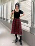 【トップス】襟元のリボンやパフスリーブがガーリーに着れるTシャツ❤︎ クロップド丈なので、どんなボトムスに合わせてもバランスが取りやすいですよ! 柔らかな肌触りで着心地も良いです◎ 【スカート】プリーツデザインがスクールガールっぽく着れるスカートです❤︎ラップデザインなのでデニムをレイヤードするのもおすすめです!膝丈なので子供っぽくならず、大人個性派に着こなせますよ◎ 【パンプス】尖ったデザインで綺麗めに。ハトメベルトで辛さをプラスした今季マストアイテムのパンプス❤︎M.Lサイズ共、ヒールは8.5cmあります!安定感あるヒールなので歩きやすいですよ◎23.5cmの私はMサイズ着用でぴったりでした! 【バッグ】夏に映えるメタリック素材を使ったバッグ♡コンパクトなサイズ感ですが、500mlのペットボトルが入るくらいマチ広めの作りになっており機能性も抜群です◎
