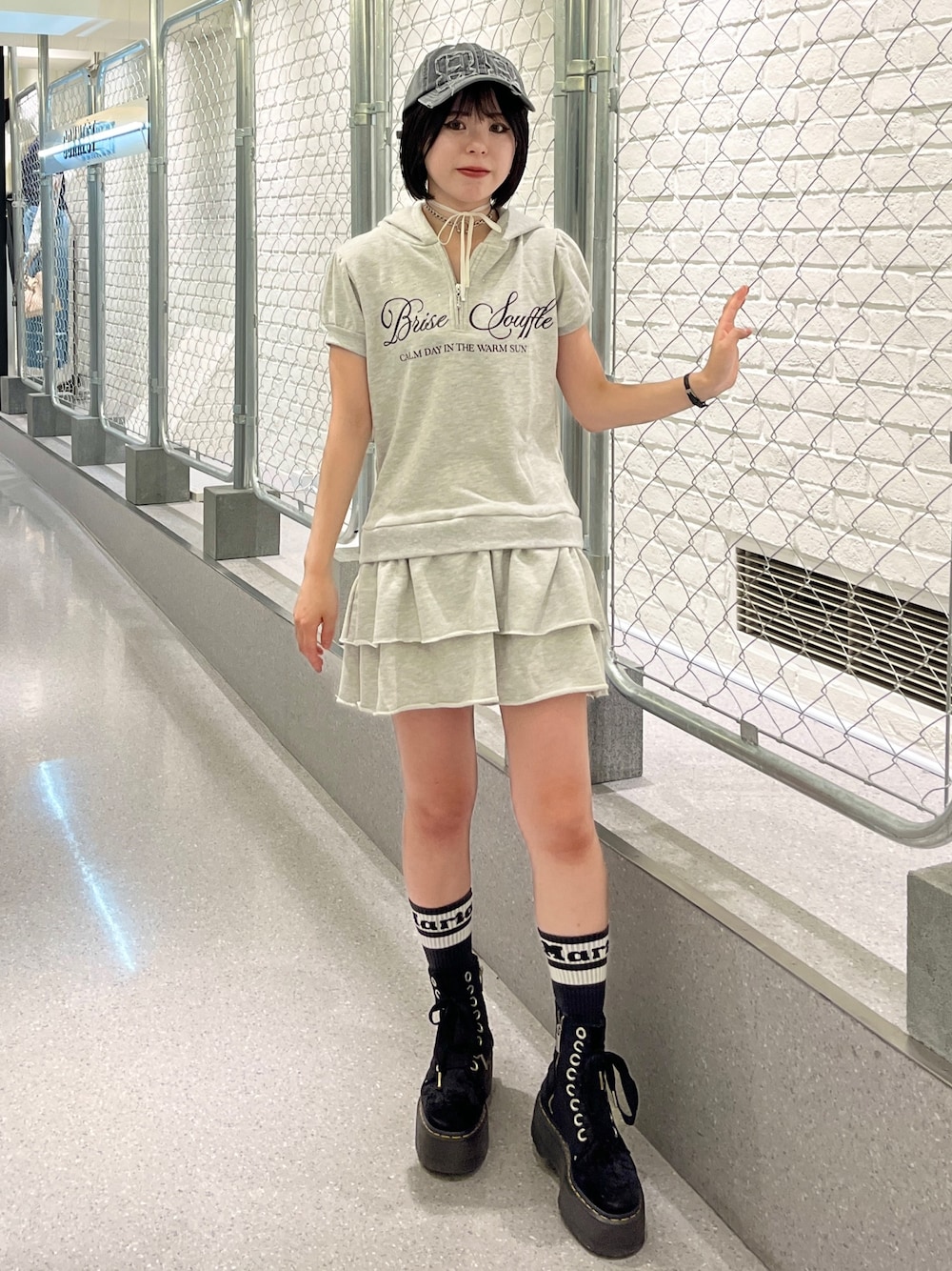 【ワンピース】スウェット生地で裏毛なので楽ちんかつオシャレにキマる♡ティアードデザインのミニが可愛いです!カジュアルに着れるのでデニムパンツをレイヤードしてもお洒落に着れますよ! 【キャップ】ナンバリングキャップは被るだけでスポーティな雰囲気が完成◎ 【チョーカー】ピアスモチーフのチョーカーはベロアの紐をリボンにするとより可愛くつけられます!