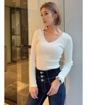 秋コーデ 【トップス】素肌が透けないくらいの丁度いい薄手のニットで、深めのVネックがデコルテ周りを綺麗にみせてくれます。ニットの長さは丁度162㎝でヘソジャストです。【アウター】ベストは今流行りのハイウエスデニムとの相性抜群○GGのパッチワークがさりげなくはいっていてカジュアルすぎず可愛いです!【デニム】国産デニムなので長く愛用していただけます!ダメージ加工も手作りで足が長く見えるようこだわったデザインになってます!【シューズ】ヒールは高いですが安定感抜群!そしてクッションが足首周りについていて、高低差のないヒールなので靴づれや足の疲れが起きにくいブーツになってます!カジュアルキレイめスタイルにもってこいです○【インナー】アンダーとトップで調整できるので、とにかく落ちずに盛れます!