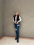 秋コーデ 【トップス】素肌が透けないくらいの丁度いい薄手のニットで、深めのVネックがデコルテ周りを綺麗にみせてくれます。ニットの長さは丁度162㎝でヘソジャストです。【アウター】ベストは今流行りのハイウエスデニムとの相性抜群○GGのパッチワークがさりげなくはいっていてカジュアルすぎず可愛いです!【デニム】国産デニムなので長く愛用していただけます!ダメージ加工も手作りで足が長く見えるようこだわったデザインになってます!【シューズ】ヒールは高いですが安定感抜群!そしてクッションが足首周りについていて、高低差のないヒールなので靴づれや足の疲れが起きにくいブーツになってます!カジュアルキレイめスタイルにもってこいです○【インナー】アンダーとトップで調整できるので、とにかく落ちずに盛れます!