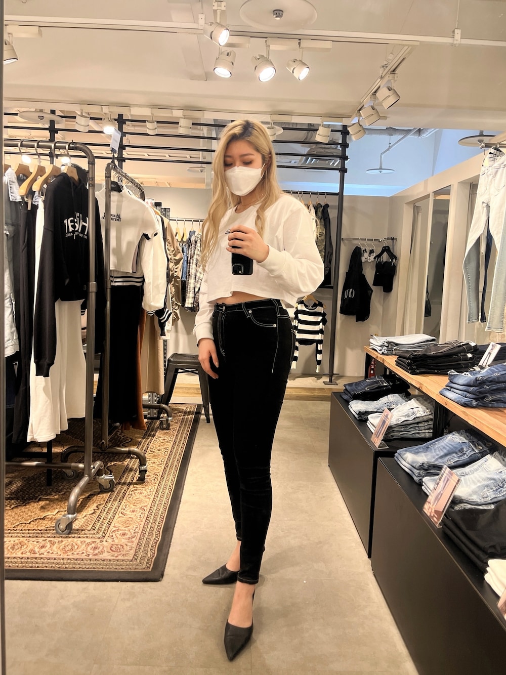 【トップス】DCコラボのロンT! 前はシリコンパッチが付いていて、バックプリントはイエローカラーの文字が可愛い○みぞおちよりも長めの丈感で、ハイウエストのパンツと相性抜群です!下着が透けにくいホワイトなので安心です! 【ボトムス】美脚デニム○ストレッチが効いていて着圧効果抜群です!ステッジが入っているので脚のメリハリ効果抜群です!どのシーンでも使いやすいボトムスの一つです○ 【シューズ】クッションの効いたミュールで脚が疲れにくくなってます!これからの季節にもってこいで、カジュアルコーデに合わせるとバランスが取れて可愛いです○