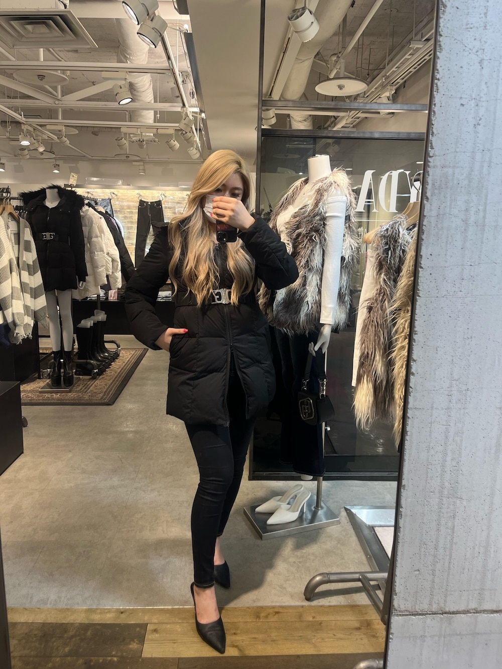 大人気!-5kgダウンロングコート! 今年は、リアルダウン90%で再登場○ 暖かく、軽いのと型崩れもしにくいです! ウエストマークがハイなのと、元々くびれたシルエットなので着るだけで細見えします○ 横からのシルエットも腰にかけてくびれるので女性らしくなります! オールブラックコーデでも、下のチャックを開けることができるので重くなりすぎずに来て頂けます! ワンピース風や、スキニーパンツとの合わせが可愛いです!