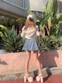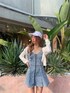 1枚で楽ちんおしゃれなガーリーコーデ❤︎ 【ワンピース】ケミカル加工のデニム生地で他と被らないヴィンテージ感が出て、1枚でもおしゃれに着ていただけるワンピースです!くびれより上めに切り替えがついており、ミニ丈のスカートがフレアの形になっていることで脚長効果抜群になっています❤︎インナーパンツ付きなので170cmの私でも安心して着用できました!生地が硬めでしっかりしているので、ズレることなくフレアの形を綺麗に保ってくれます◎フロントファスナーになっていて着脱しやすく、パット付きなので下着なしでも安心です!胸元が気になる方は、Boosterブラトップを付けていただくとよりズレにくく安定します◎ 【アウター】ショート丈のベーシックなパーカーです!タイトシルエットなのでショート丈のトップス合わせやミニ丈のワンピース合わせがスタイルをより綺麗に見せてくれるのでおすすめです◎生地は厚すぎず薄すぎずなので、年中着回ししていただける優秀アイテムです❤︎夏場では、露出感が気になる時にも羽織っていただけます! 【キャップ】安斉星来さんコラボのキャップです!深めで被りやすく、ロゴがシンプルなので服装を選ばず合わせやすくなっています◎ 【シューズ】去年も大人気だったチャンキーソールサンダルです!ヒールがLサイズで12.5cmと厚底サンダルの中でも高めの作りになっています!ソールも6cmあるので安定感があり、歩きやすいです!厚底サンダル特有の重さが無く、楽に履いていただけるのも高ポイント◎足首のベルト部分で長さ調節も可能です!
