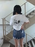 バニーちゃんが主役の夏先取りコーデ🌴 【トップス】バックロゴの寝転んでるバニーちゃんのロゴが可愛いビッグTシャツです!170cmで腰回りくらいまでの丈感だったので、インしやすくごわごわしなかったです🙆♀️透け感はあまりなかったので、白色でも安心して着用していただけます! 【ボトムス】ダメージ具合がGYDAらしいデニムスカートです!太ももの外側に向けて短くなっているデザインなので、脚がより細く長く見えて着痩せ効果抜群です! 【シューズ】毎年人気のコルクサンダルです! 今年はラインが細くなり、より脚が綺麗に見える設計になっています!軽くて高低差が少ない分歩きやすく疲れにくいです!