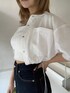 【SHIRT】サラッとテロっとした素材感なので暑い夏でも着心地抜群です☀️裾のドロストしっかり絞れば腰の位置高く見えるので脚長効果もあります!! 【INNER】めちゃくちゃ使えるカップ付きの短丈キャミソール🤍カップの下にゴムが付いているのでズレにくくて安心です👏🏽 【DENIM】デニムの中でも薄い生地感なので夏でも暑苦しくなくご着用頂けます💧ダメージの位置が高めになっているので脚長効果も抜群です!! 【SHOES】びっくりするぐらい軽くてクッション性に優れた厚底サンダル✨ヒールが太めなので安定感がしっかりあるのも嬉しいポイント🫶🏼🤍