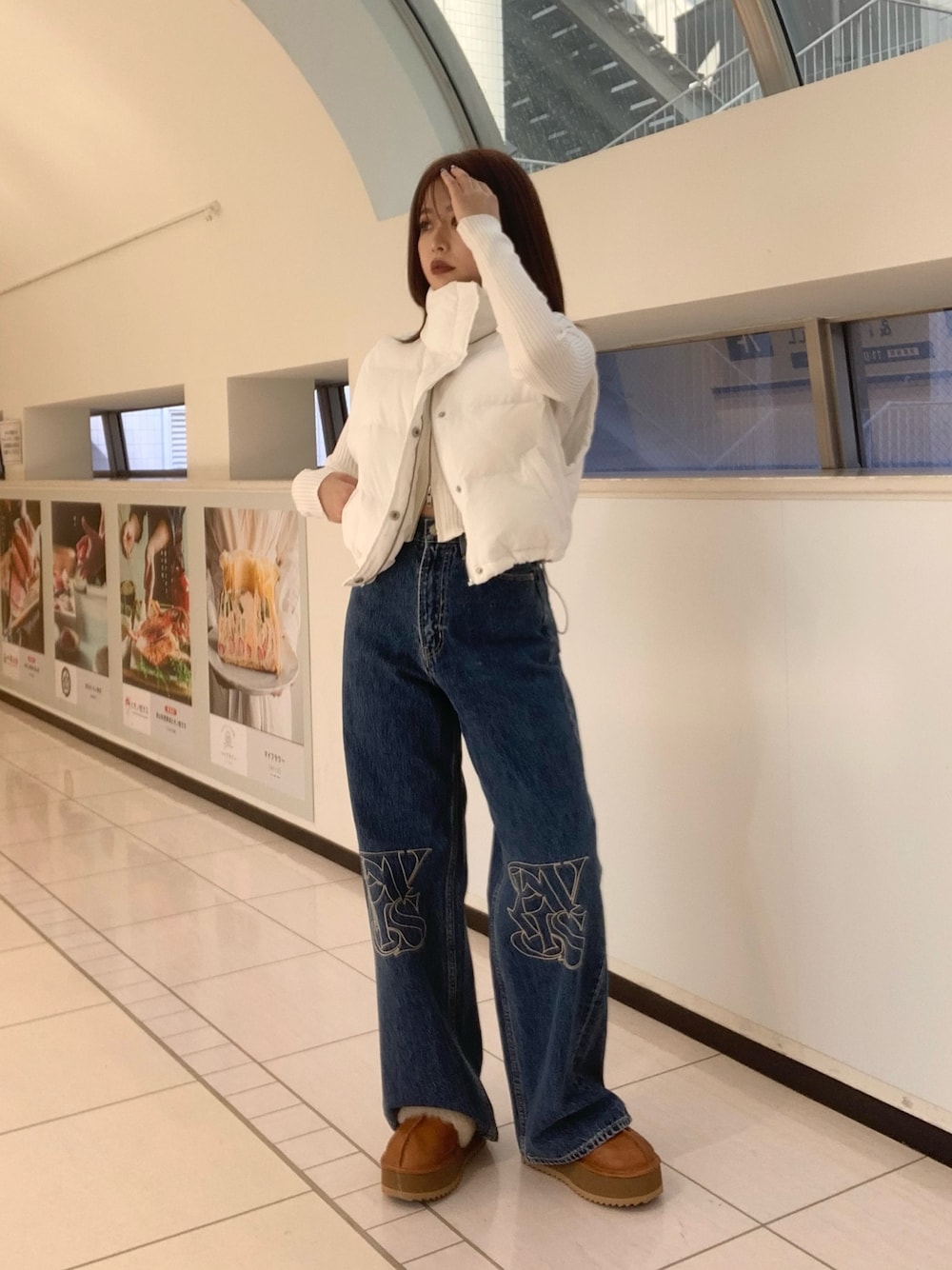 藤岡真央(EVRIS)のダウンベスト「ボリュームショートベスト」を使ったコーディネート