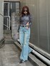 【TOPS】 シアー素材のボディスーツ🐦⬛ フィット感あるのでボトムスインもしやすいです! 【DENIM】 ストレッチ抜群なローライズデニム👖 154cm Sサイズ着用で裾すらない長さではけました!