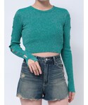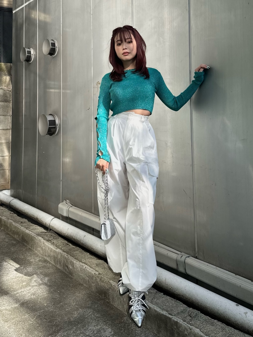 藤岡真央(EVRIS)のニット/セーター「アームカッティングラメニット」を使ったコーディネート