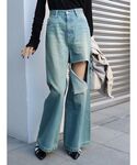 【TOPS】 コルセットデザインのビスチェ🩶 後ろがギャザーになっているのでバストが気になる方でも着やすくなっています💫 【DENIM】 154cm Sサイズで低めのヒールを合わせて裾擦らずに着用できました👖 【SHOES】 22.5cm甲高幅広でMサイズ着用です🪽 見た目よりかなり軽いので履き心地も良くなっています🫶🏼