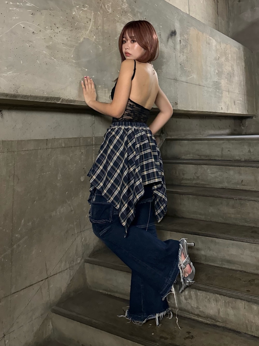【TOPS】 背中が多くあいたレーストップス🪽 カップ付きで1枚で楽にご着用できます! 【DENIM】 154cmローヒール合わせで裾擦らずに着用できました🫶🏼