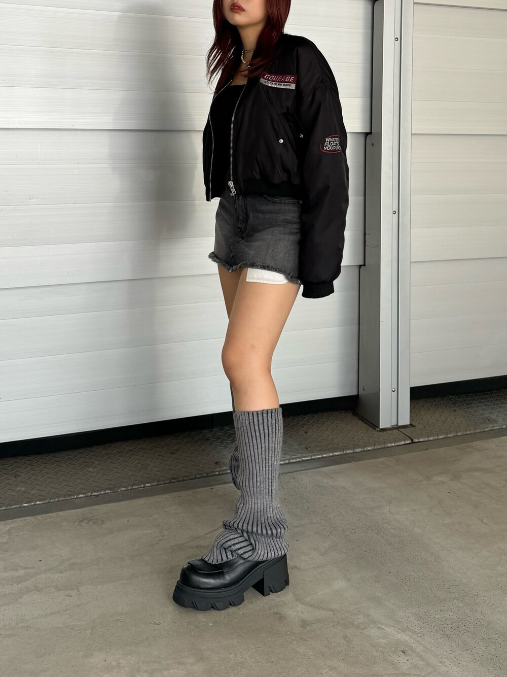【OUTER】 見た目よりかなり軽いMA-1🏁 中綿が入っているので暖かくご着用いただけます! 【SKIRT】 154cmで太ももの1番太い部分がギリギリ隠れるくらいの長さで着用できました! インパン付きで安心して履いていただけます✨ 【LEGWEAR】 154cm、厚底合わせで裾擦らずに着用できました! 【SHOES】 22.5cm幅広甲高でMサイズ着用しております🪽