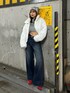 【OUTER】 見た目の10分の1くらいの軽さで来てないくらい軽いのに暖かいブルゾン🌨️ 少し艶感のある素材になっています!! 【TOPS】 ウエスト隠れるくらいのショート丈のニットを折り返してお腹見えるように着用しております! もふもふの肌触りで着心地も抜群です🐏 【DENIM】 少しローライズなウエストのデニムパンツ👖 154cmスニーカー合わせで裾ギリギリ擦るか擦らないかぐらいの長さで着用できました!