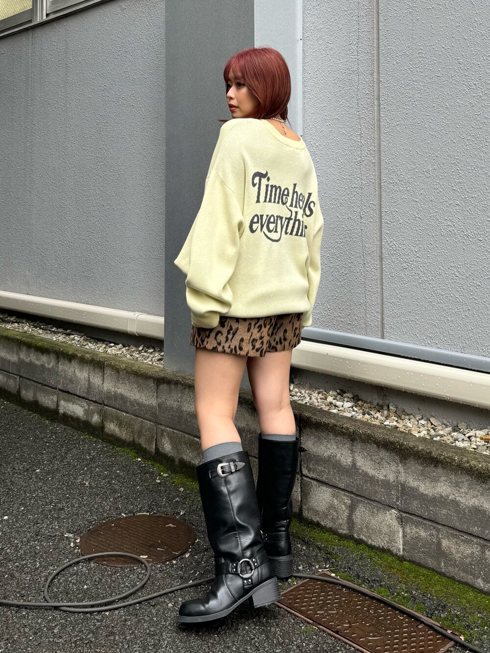 藤岡真央(EVRIS)のニット/セーター「バックロゴオーバーサイズニットトップス」を使ったコーディネート