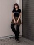 藤岡真央(EVRIS)のTシャツ/カットソー「スタッズグラフィックショートTシャツ」を使ったコーディネート