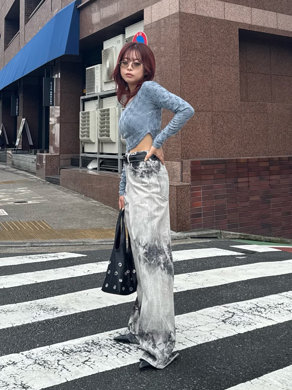 藤岡真央(EVRIS)のTシャツ/カットソー「ダメージカットクロップドロンT」を使ったコーディネート