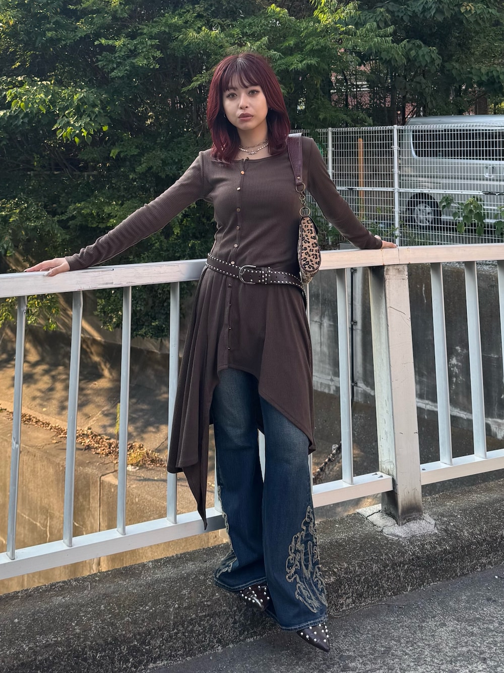 藤岡真央(EVRIS)のデニムパンツ「ウエスタンデザインフレアデニムパンツ」を使ったコーディネート