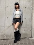 藤岡真央(EVRIS)のパーカー「ワンポイントブリーチジップアップフーディ【セットアップ着用可能】」を使ったコーディネート