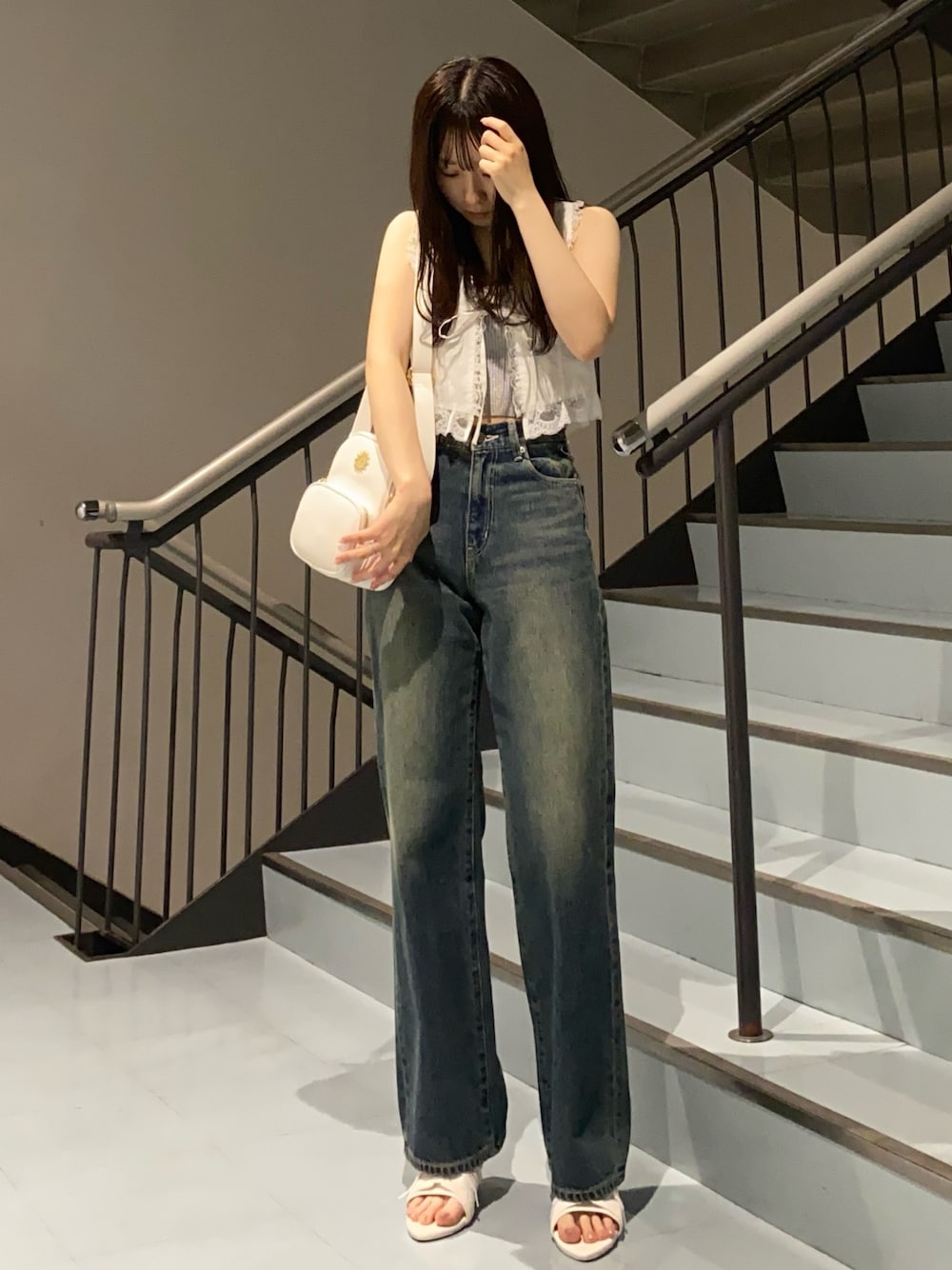 林瑞季(EVRIS)のデニムパンツ「ウエストビジューワイドデニムパンツ」を使ったコーディネート
