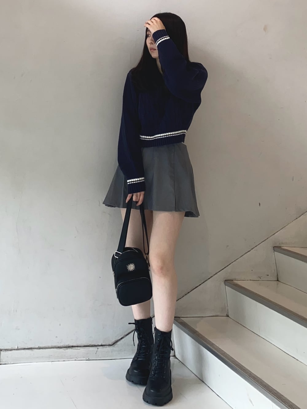 【tops】evris毎年人気のサニーハーフジップニットトップスのショート丈版です!ジップを開けると首元すっきり見えますし全部閉めてハイネックで着ても可愛いです🤍 【skirt】ウエスト部分にデザインがあるスカートです!デザインがあることにより、ウエスト部分がすっきり見えます 【shoes】インソールが入っているので実は身長盛れちゃうブーツです!24cmでLサイズ履いてます 【bag】縦に長い形なのでカバン自体はコンパクトに見えますが、中身はたくさん入ります☺︎