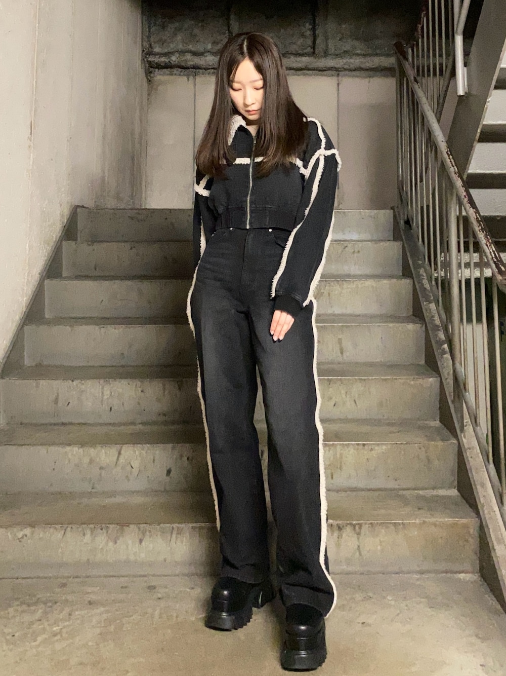 【jacket】セットアップで着用していただけます!ボアが秋冬感あってとっても可愛いです!ショート丈なので脚が長く見えます! 【denim】セットアップ着用できます。159cmでSサイズ履いてます。サイドにボアのラインが入っているので脚が真っ直ぐに見えて脚長効果大です! 【shoes】24cmでLサイズ履いてます。 10cm盛れるのにすごく軽いブーツです!厚底なのでスタイルアップ間違いなしです!