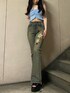 【tops】肩紐のビジューがとっても可愛いです!パットが付いてないので、Tシャツの上から着てあげても🙆♀️ 【denim】159cm Sサイズ着用してます。太もも部分のラインストーンと刺繍が繊細でコーデが華やかになります♡ 生地が柔らかいフレアデニムなので夏場でも履きやすいです! 【shoes】24cmでMサイズ着用。高低差が少なく、とにかく軽いので長時間の移動にも履けちゃいます!