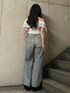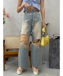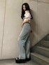 林瑞季(EVRIS)のデニムパンツ「グランジダメージワイドデニムパンツ」を使ったコーディネート