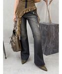 【tops】ビジューチェーンが可愛いトップスです!前後どちらでも着ていただけるので雰囲気を変えて着用できます。 【denim】159cmでSサイズ着用。ポケットが特徴的なフレアデニムです!フロント部分のちょこっとダメージもポイントです! 【shoes】24cmでLサイズ着用。evris定番の厚底ブーツです!高低差があまりなく、とにかく軽いので楽に着用できます。