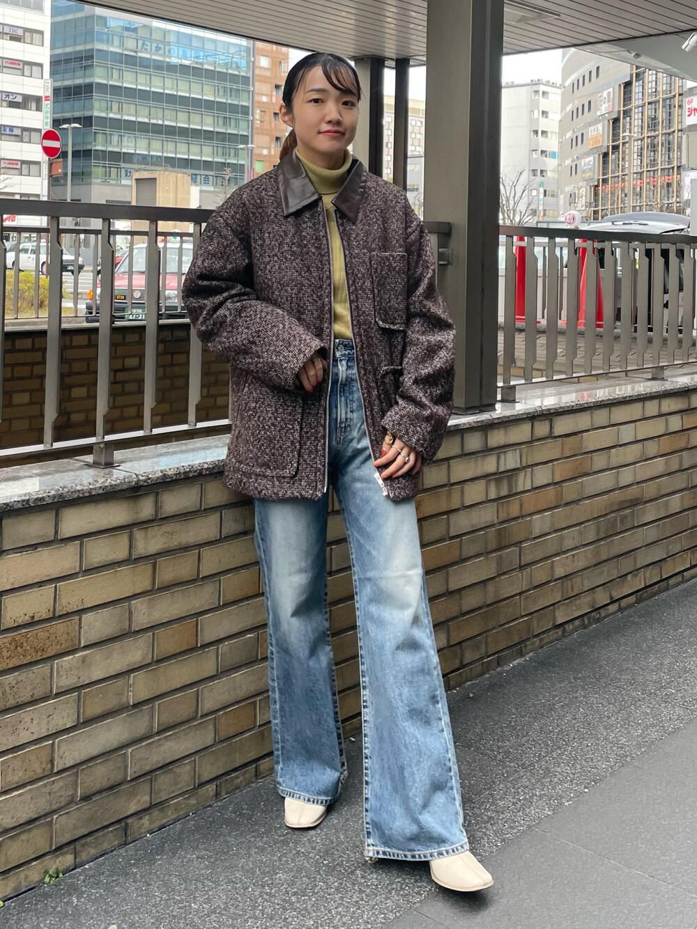 【knit】 ungrid定番ニット🧶 ウォッシャブルでお洗濯しても毛玉になりにくく、チクチク感もなく程よいフィット感で持ってて間違いなしのアイテムです!!💛 【outer】 襟はレザーを使用しており大人っぽく着て頂けます◎ ミドル丈でヒップも隠せる丈感✨ 大きいポケットがポイントなアウターです🤭 【denim】 脚長効果抜群のデニム👖 腰回りや太ももラインはピッタリで足が細く見えます👀 フレア過ぎない形が履きやすく、挑戦しやすいです♡ ※159cm 24inch着用