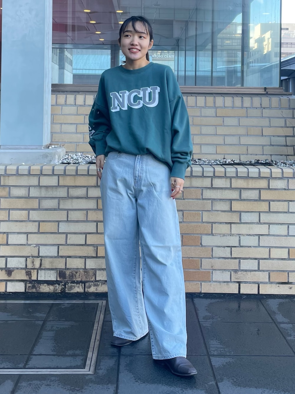 【tops】 ungrid人気のスウェットシリーズ🟢 今回のポイントは袖に施されたペイントデザイン🎨 古着のようなデザインが可愛いです♡ 【denim】 ウエストはフィットし 丈はズルッと長めのお作り👖 ワイドデニムですが、太すぎないので足をすらっと見せて頂けます✨ *159㎝ 24inch着用